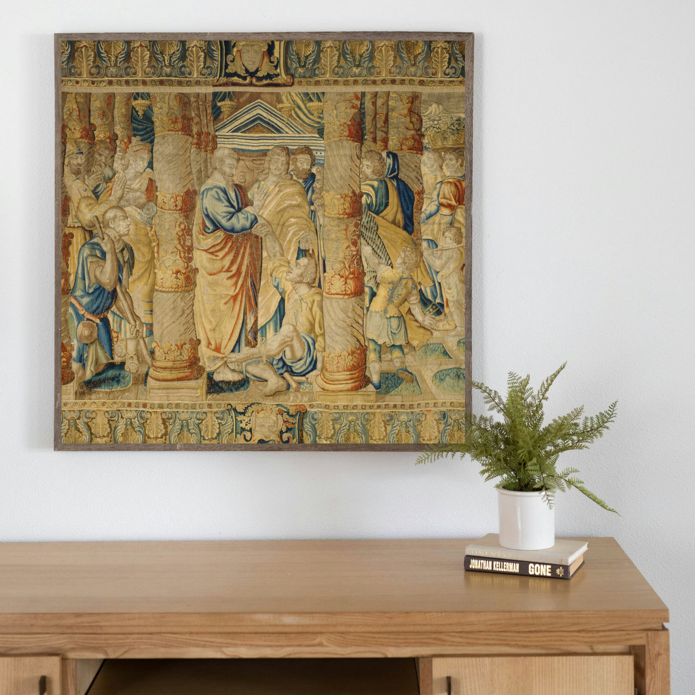 In summary, Peter and John at the Beautiful Gate in tapestry form is a visual narrative that transcends its medium, offering viewers a glimpse into a pivotal moment in Christian history. Through meticulous craftsmanship and profound storytelling, it brings to life a timeless story of faith and miraculous healing, inviting contemplation and reflection on themes that resonate across cultures and centuries.